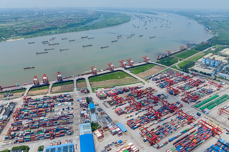 武漢陽邏港一期碼頭(2023年7月5日攝,無人機照片)。