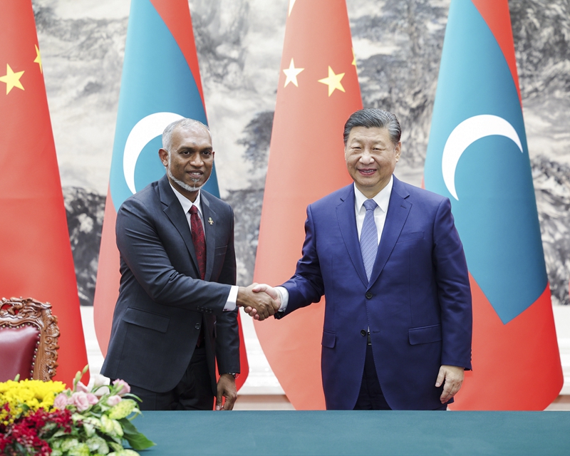 1月10日下午,國家主席習近平在北京人民大會堂同來華進行國事訪問的馬爾代夫總統穆伊茲舉行會談。