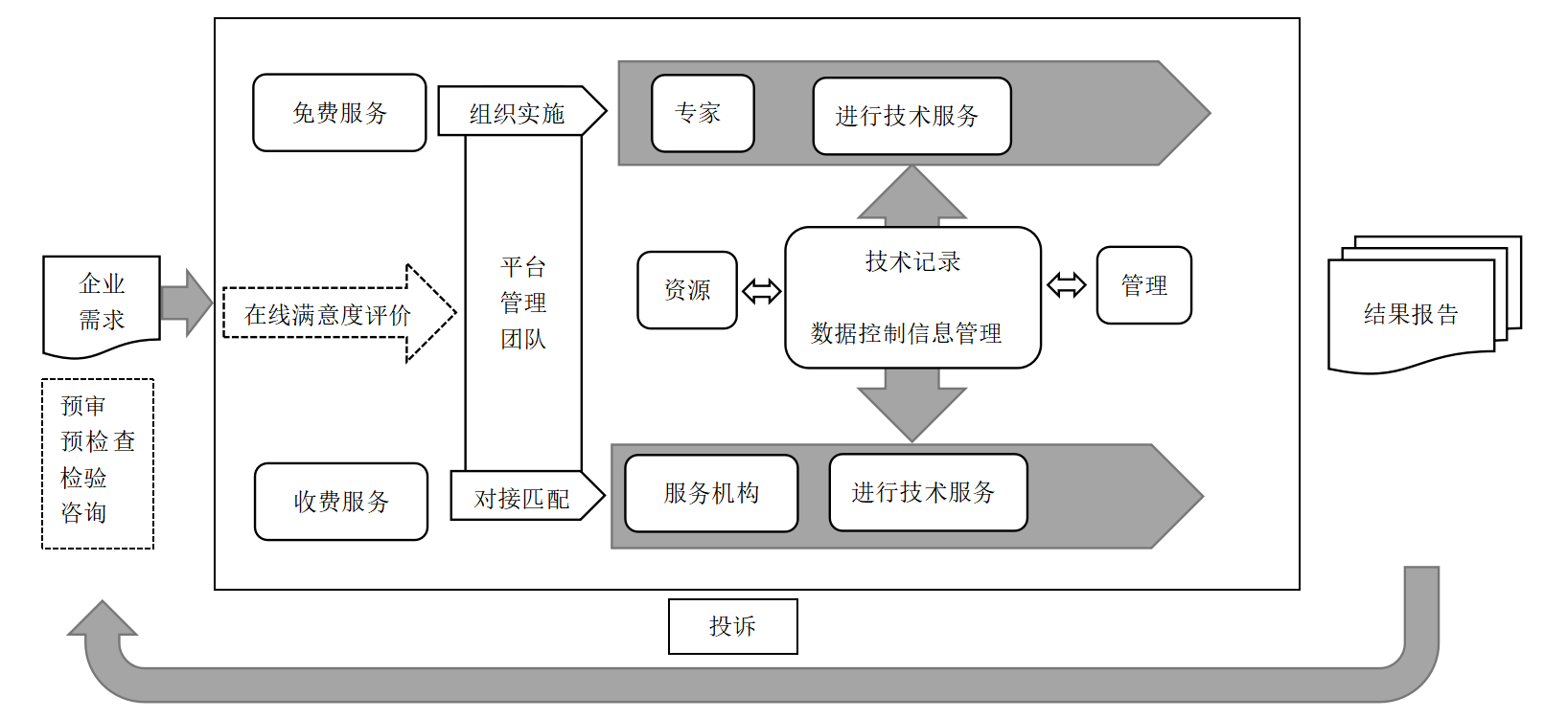 中心通過平台的建設與運營,完成了一整套的管理程序與標準,包括製定專家庫管理製度、服務機構管理標準、保密管理製度、預檢查服務專題、預審核服務專題、谘詢服務專題、檢驗服務專題等專題介紹和工作指引、報告模板等,構建平台運作流程圖並規定了業務辦結時限控製和多維度滿意度評價指標,確保服務有流程、有指引、有模板,為其他生物醫藥產業聚集區的複製推廣應用提供了可以借鑒的樣板。