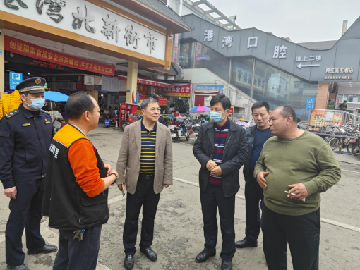2月6日下午,黃埔街副總河長、街道辦事處主任孫功餘帶隊前往港灣北市場及周邊路段進行調研,深入了解港灣北市場、西三街路段內的近況,並聽取街道執法辦主任李昶彙報黎信坤副區長對黃埔街轄區港灣北市場周邊、西三街路段的違規搭棚建築與廣告張貼的整改要求,實地查看整改後的場地現狀,要求執法辦既處理違法違章事項實現改善市容麵貌的目的,又保障經營戶的權益,通過服務把取締變安置。區城管執法局,黃埔區街、市場管理方等負責同誌參加。