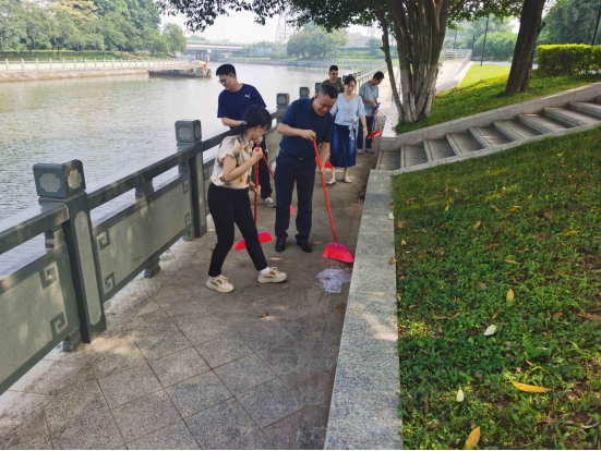 夏港街道辦事處主任、總河長何瑩帶隊前往南灣湧開展巡河與"洗河"活動
