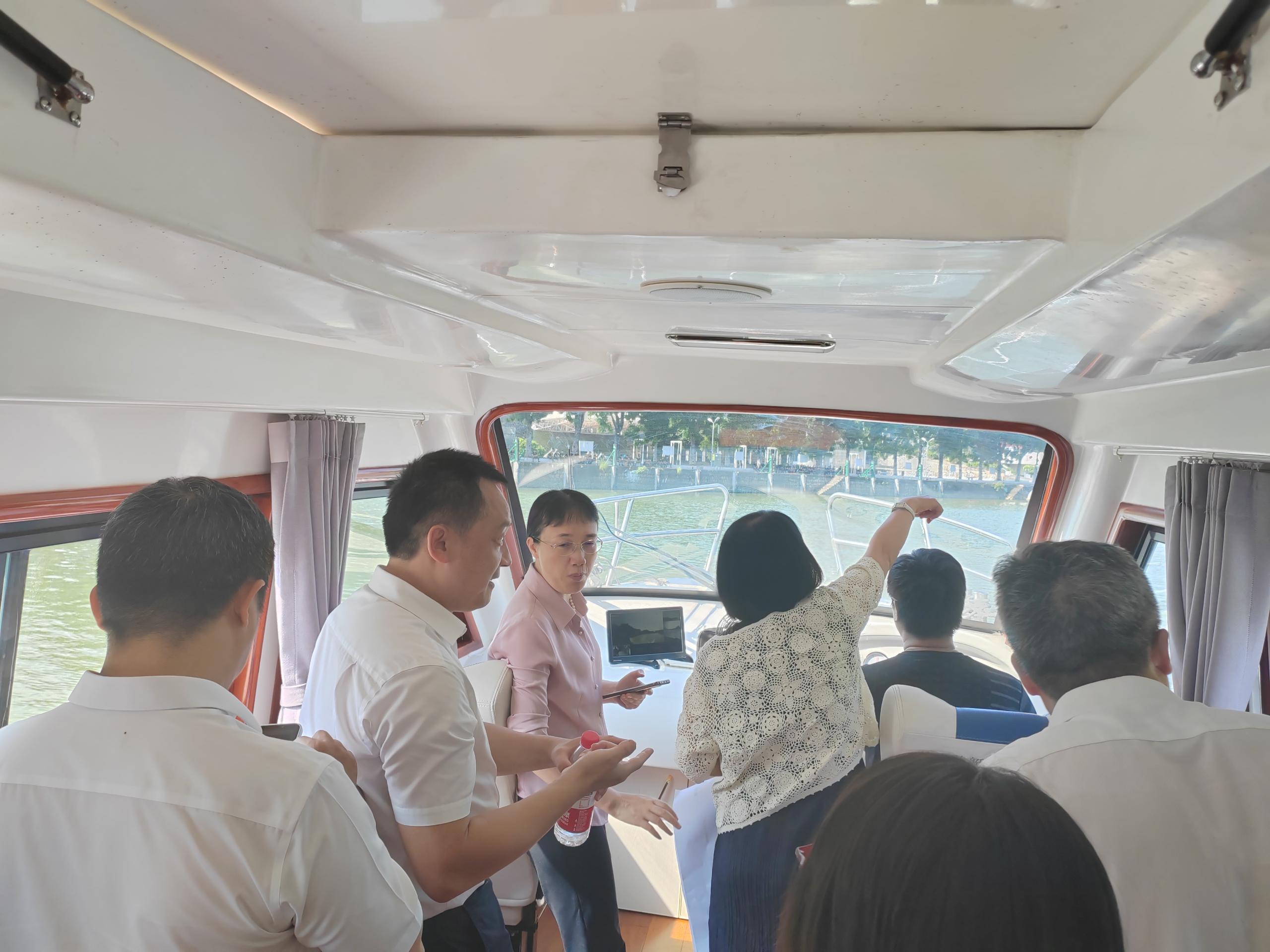 7月12日下午,冼銀崧區長帶隊調研穩增長、西區振興、綠美黃埔生態建設等工作,調研組一行乘船水上遊覽扶胥運河(東滘湧、西滘湧、墩頭湧),研究古運河文化賦能、碧道貫通、水環境提升、水經濟營造等建設方案;實地踏勘益海嘉裏等企事業單位圍牆、廠區道路、廠房、碼頭侵占濱河岸線,影響碧道貫通情況;現場研究廟頭湧支湧連南灣湧支湧水係堵點打通方案等。廣州開發區管委會副主任代新祥,區政府辦、區水務局、區應急管理局、穗東街、夏港街、區建管中心、區重點辦等單位負責同誌參加。