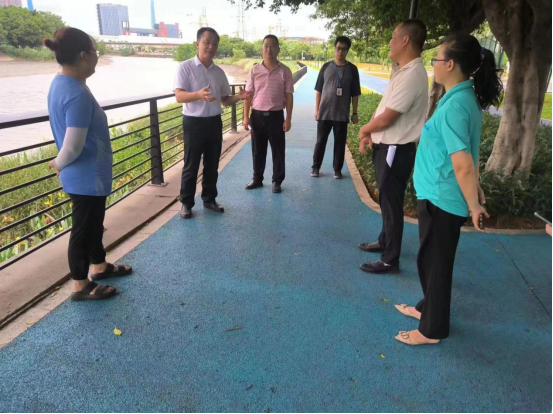 7月17日,廣州開發區管委會副主任、夏港街道黨工委書記代新祥帶隊到轄內6個社區督導第4號台風“泰利”防禦工作,現場查看轄內河湧並開展隱患排查,巡查河湧護欄、警示標誌及救生圈等設施,提醒社區及居民群眾做好防台風暴雨措施,並就防禦工作情況提出指導意見。夏港街道黨工委委員、辦事處副主任郭寧,區水務局、應急管理辦(安監中隊)、各社區相關工作人員參加。