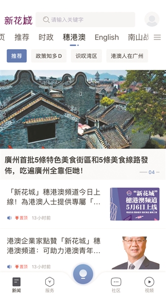 廣州市區融媒體中心客戶端“新花城”穗港澳粵語頻道5月6日上線,頻道將被打造成服務港澳青年來穗創新創業的窗口、連接粵港澳生活圈的第一城市指南和促進穗港澳交流合作聯絡的主陣地。具有粵語生態、繁體顯示、港式表達三大特色的“新花城”穗港澳粵語頻道受到不少港澳青年的關注。