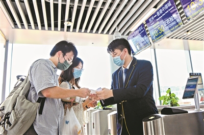 5月4日,記者走訪現場看見,在琶洲港澳客運口岸二樓大廳可預辦航空公司登機手續、行李直掛、離境退稅等手續,旅客需要在水上船班開航前至少90分鍾到達琶洲港澳口岸辦理。琶洲到香港國際機場航線開航前30分鍾停止檢票,閘口關閉後無法登船,航班開航前40分鍾停止辦理售票和值機手續。