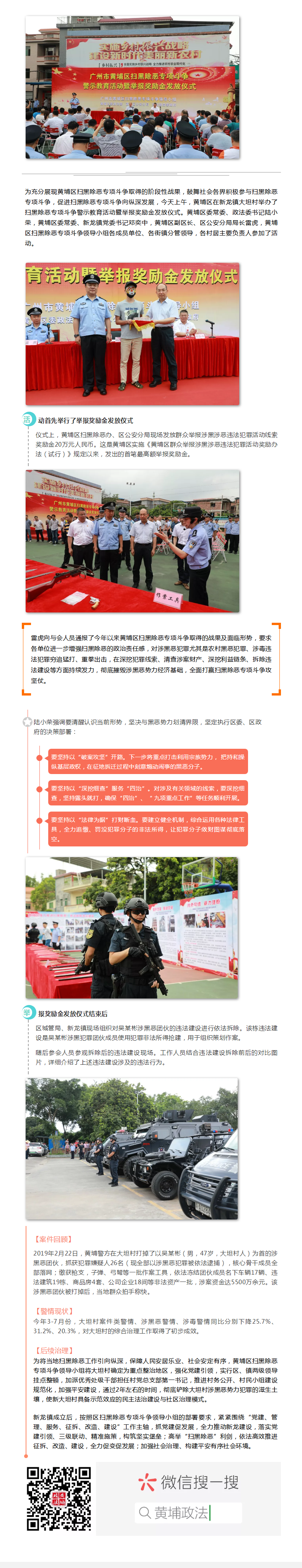 20萬重獎!黃埔區舉辦掃黑除惡警示教育活動暨舉報獎勵金發放儀式