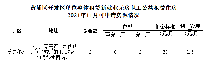 黃埔區開發區單位整體租賃新就業無房職工公共租賃住房零散房源2021年11月可申請房源情況(包含退出信息)