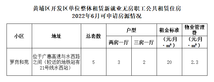 黃埔區開發區單位整體租賃新就業無房職工公共租賃住房零散房源2022年6月可申請房源情況(包含退出信息)