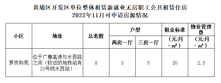 黃埔區開發區單位整體租賃新就業無房職工公共租賃住房零散房源2022年11月可申請房源情況(包含退出信息)