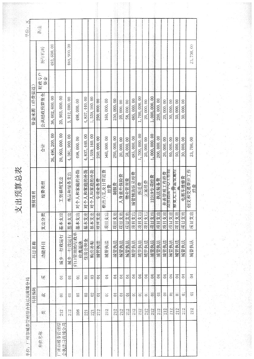 廣州市城市管理綜合執法局黃埔分局2013年支出預算3,649.62萬元,其中: