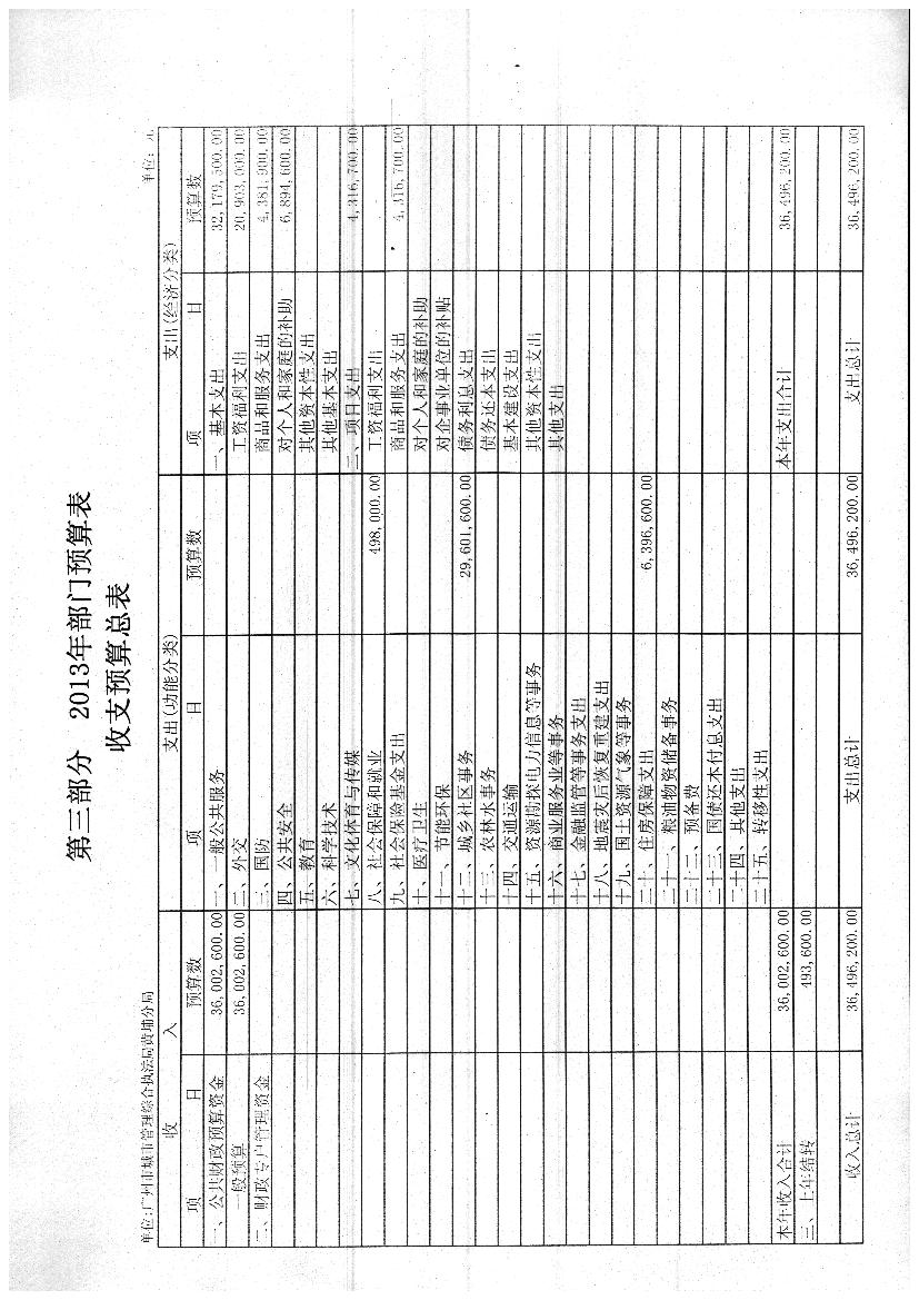 第三部分 2013年部門預算表