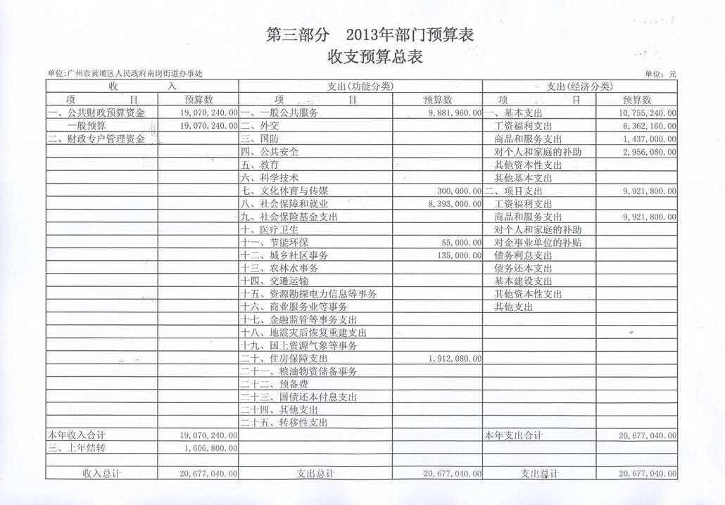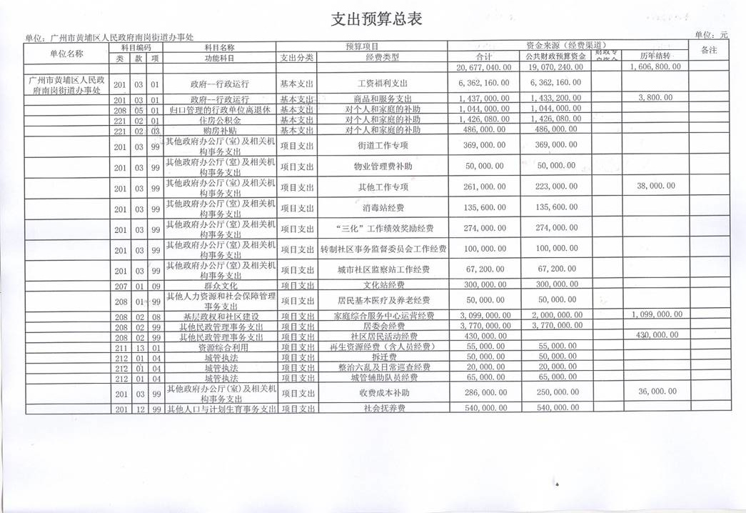 黃埔區人民政府南崗街道辦事處2013年支出預算2,067.70萬元,其中: