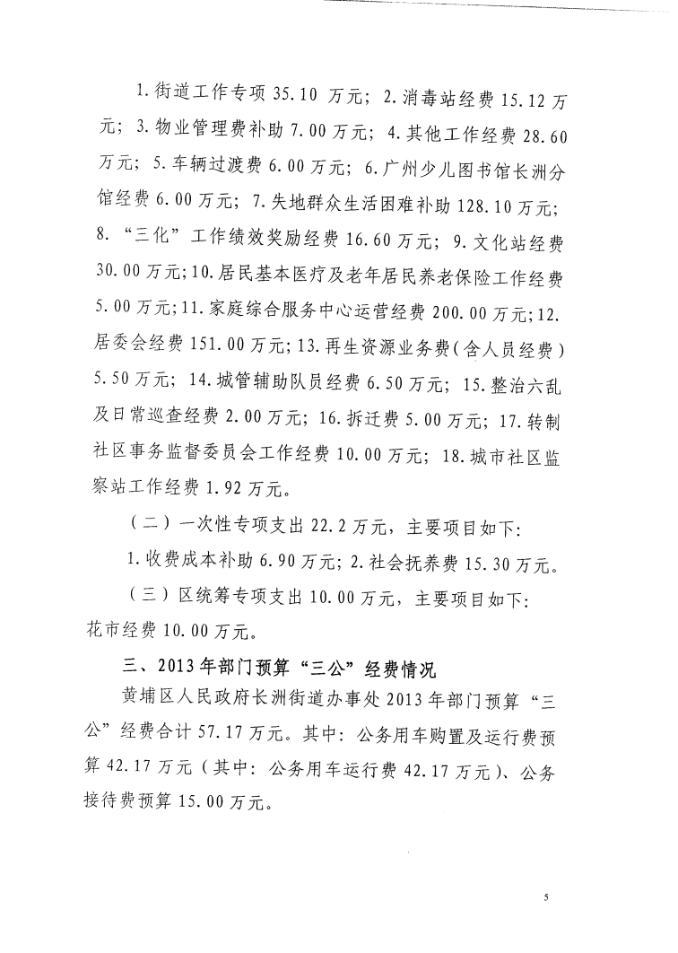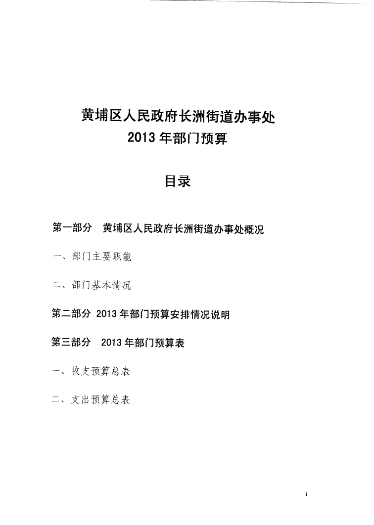 黃埔區人民政府長洲街道辦事處2013年部門預算
