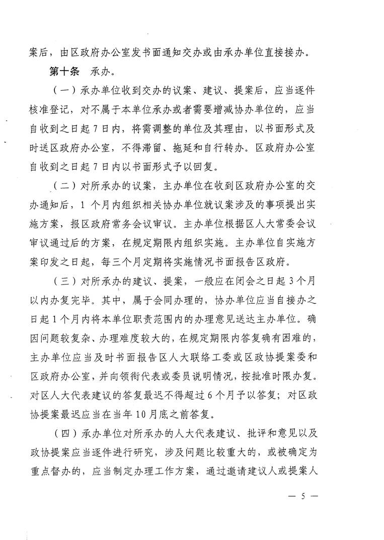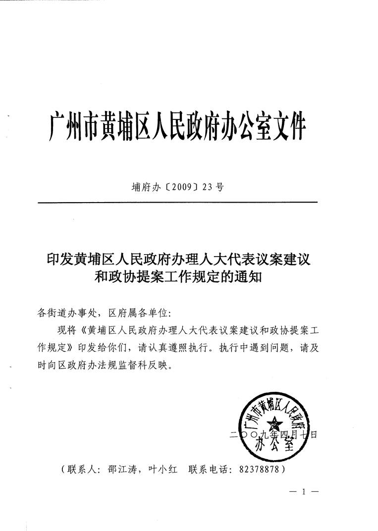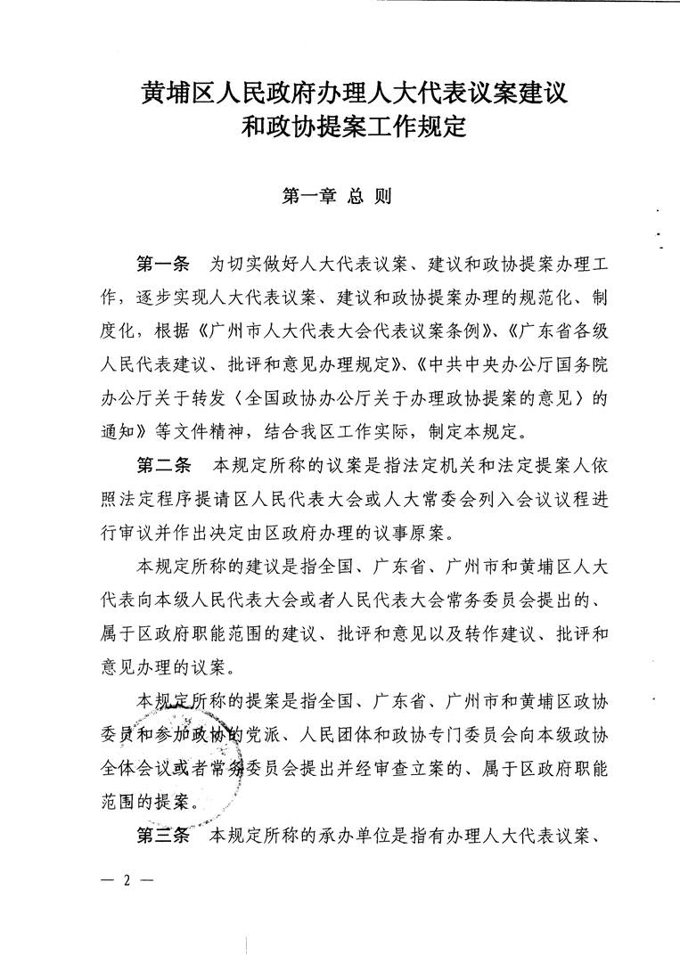 印發黃埔區人民政府辦理人大代表議案建議和政協提案工作規定的通知