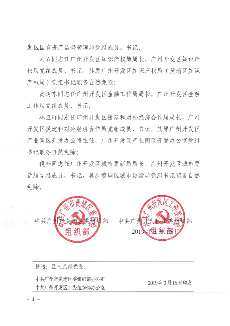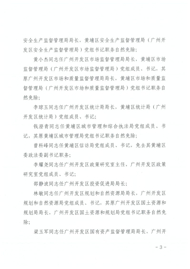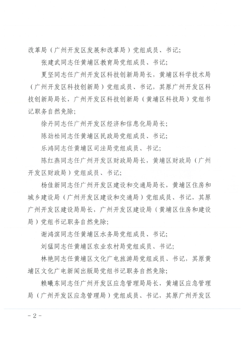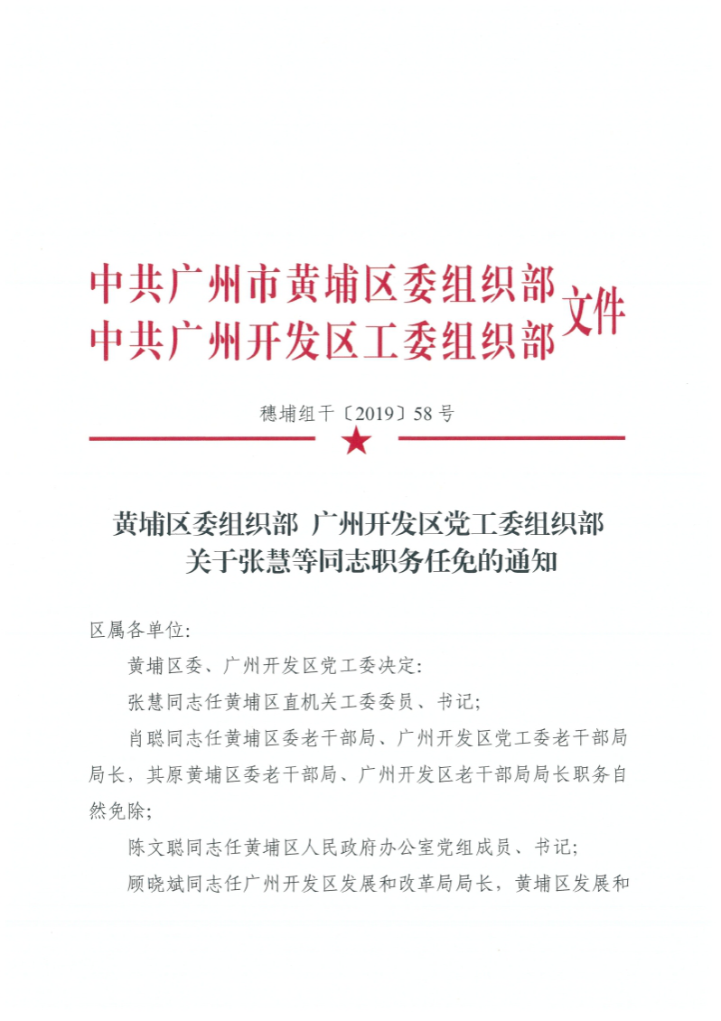 黃埔區委組織部 廣州開發區黨工委組織部關於張慧等同誌職務任免的通知