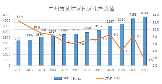 黃埔區2011-2022年地區生產總值表