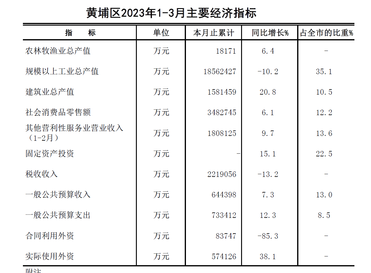 2023年3月黃埔區主要經濟指標