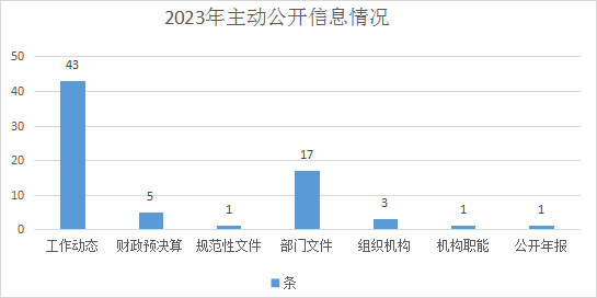 (一)積極推動主動公開。2023年,我委(辦)高度重視政府信息公開工作,認真采集編輯信息內容,安排專人負責平台更新,確保信息公開準確性、時效性。全年共主動公開信息71條,其中工作動態類信息43條、財政預決算類信息5條、部門文件類信息18條(含行政規範性文件1條)、組織機構類信息3條、機構職能類1條、政府信息公開年報1條。
