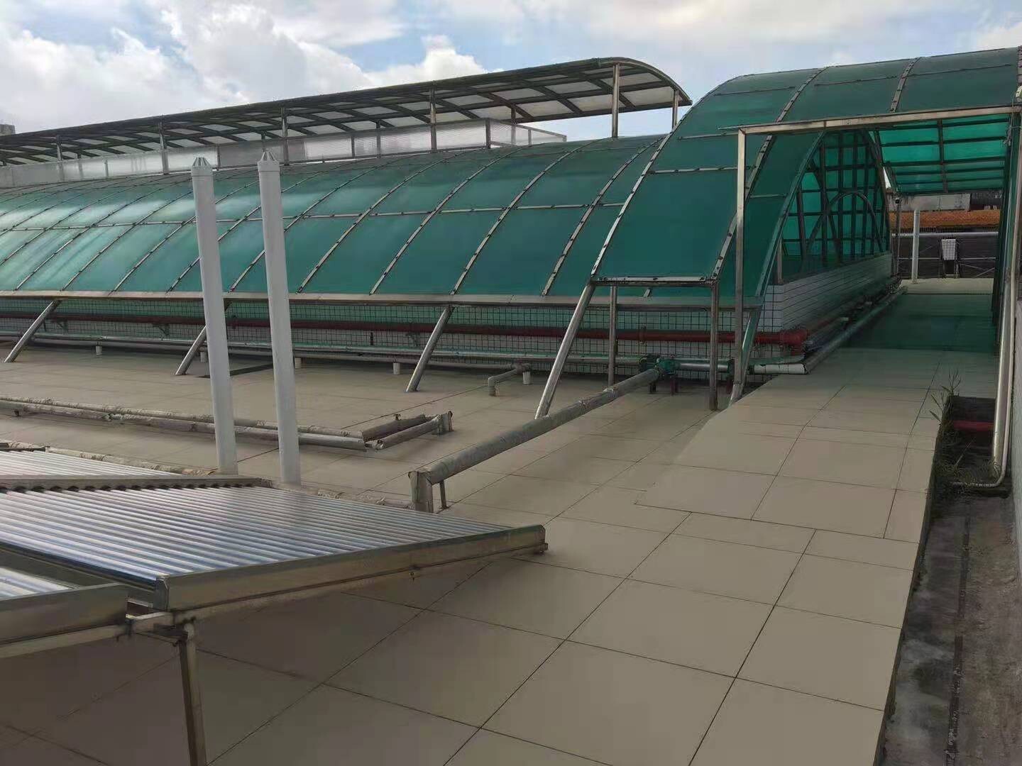 2.完成了頤康樓天麵改造,包括搭建新的雨棚、地麵鋪設防水隔熱層等。消除了原來天麵防水隔熱效果差,每逢雨天導致漏水至一樓中庭,易造成過往老人在濕滑地麵跌倒的隱患。