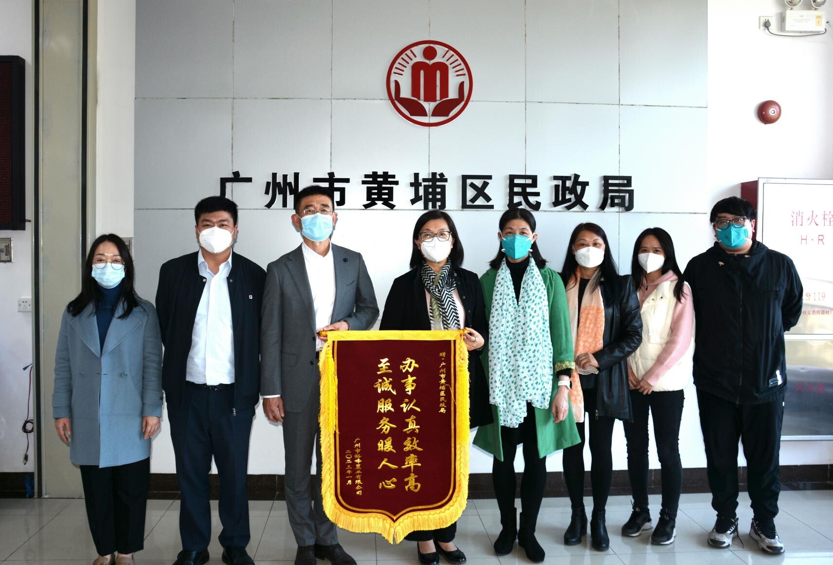 2023年1月5日下午,星河灣集團黃埔片區負責人將印有“辦事認真效率高 誌誠服務暖人心”的錦旗送到黃埔區民政局。對區民政局專業、高效的服務表示衷心感謝。